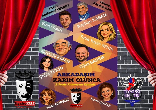 Türk tiyatrosunun önemli isimlerinden Mahmud Yesari’nin kaleme aldığı eser, 'ARKADAŞIM KARIM OLUNCA' Kayhan Kaban yönetmenliğinde sahneye taşındı. Oyunun oyuncu kadrosunda Kayhan Kaban, Emre Sarı (Mutlu Akçay), Yeşim Nehir, Mustafa Kıran, Eren Bitnel (Oğuz Nurettin Badem, Ümit Bulut), Çağla Tekin, Rana Şuvak, Nevin Metin ve Nilay Gürbüz yer aldı.