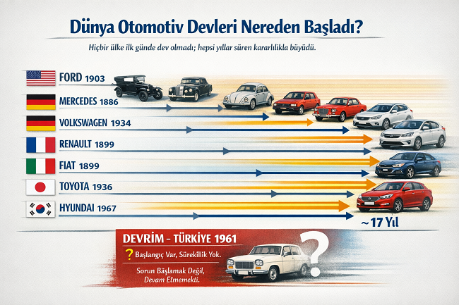 Sonuç olarak Devrim ile dünya otomotiv devleri arasındaki fark, teknik kapasite farkı değil; zaman içinde ısrar etme ve kurumsallaşma farkıdır. Bu karşılaştırma, Devrim’in neden “yapılamadığı”nı değil; neden devam ettirilmediğini bir kez daha görünür kılmaktadır.