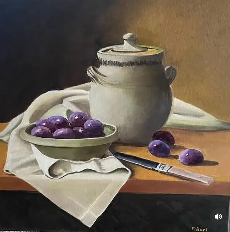 Klasik tarzda manzara ve natürmort temalarına yönelen Bari, doğanın dinginliğini, renklerin uyumunu ve anların zarif güzelliğini çalışmalarına yansıtıyor.