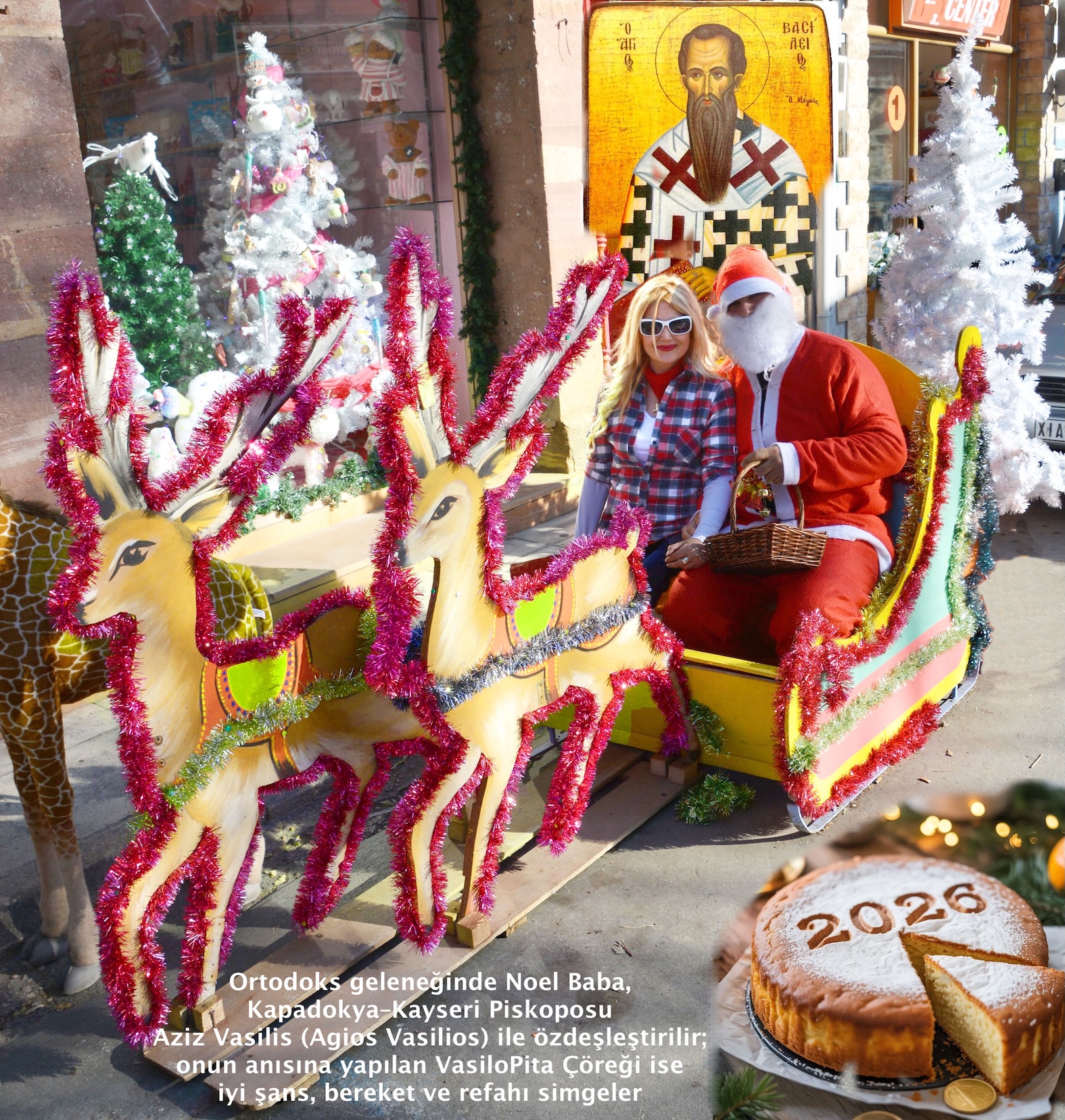 Ortodoks geleneğinde Noel Baba, Kapadokya–Kayseri Piskoposu Aziz Vasilis (Agios Vasilios) ile özdeşleştirilir; onun anısına yapılan VasiloPita ise iyi şans, bereket ve refahı simgeler