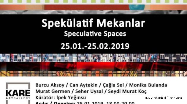 Nişantaşı Abdi İpekçi Caddesi üzerinde faaliyet gösteren Kare Sanat, Küratörlüğünü İpek Yeğinsü’nün üstlendiği Spekülatif Mekanlar başlıklı grup sergisine ev sahipliği yapıyor. Sergide Burcu Aksoy, Can Aytekin, Çağla Sel, Monika Bulanda, Murat Germen, Seher Uysal ve Seydi Murat Koç’un resim, fotoğraf ve video gibi farklı tekniklerdeki yapıtları yer alıyor…