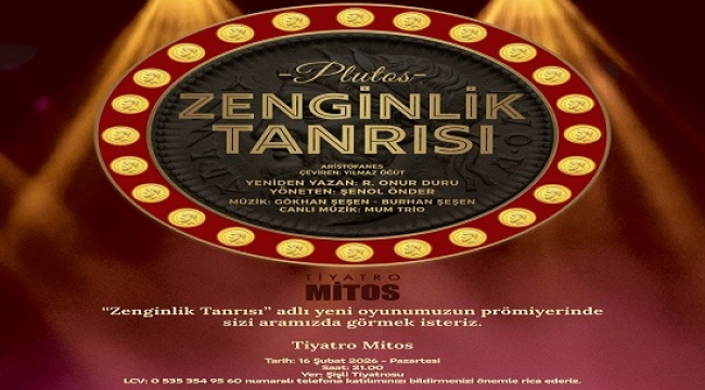 TİYATRO MİTOS'TAN "ZENGİNLİK TANRISI"OYUNU SEYİRCİ İLE BULUŞUYOR