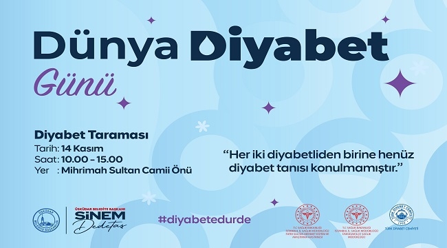 Diyabet konusunda erken teşhisin önemini vurgulamayı amaçlayan “Diyabet Taraması”, 14 Kasım Cuma günü 10.00–15.00 saatleri arasında Mihrimah Sultan Camii önünde gerçekleştirilecek.